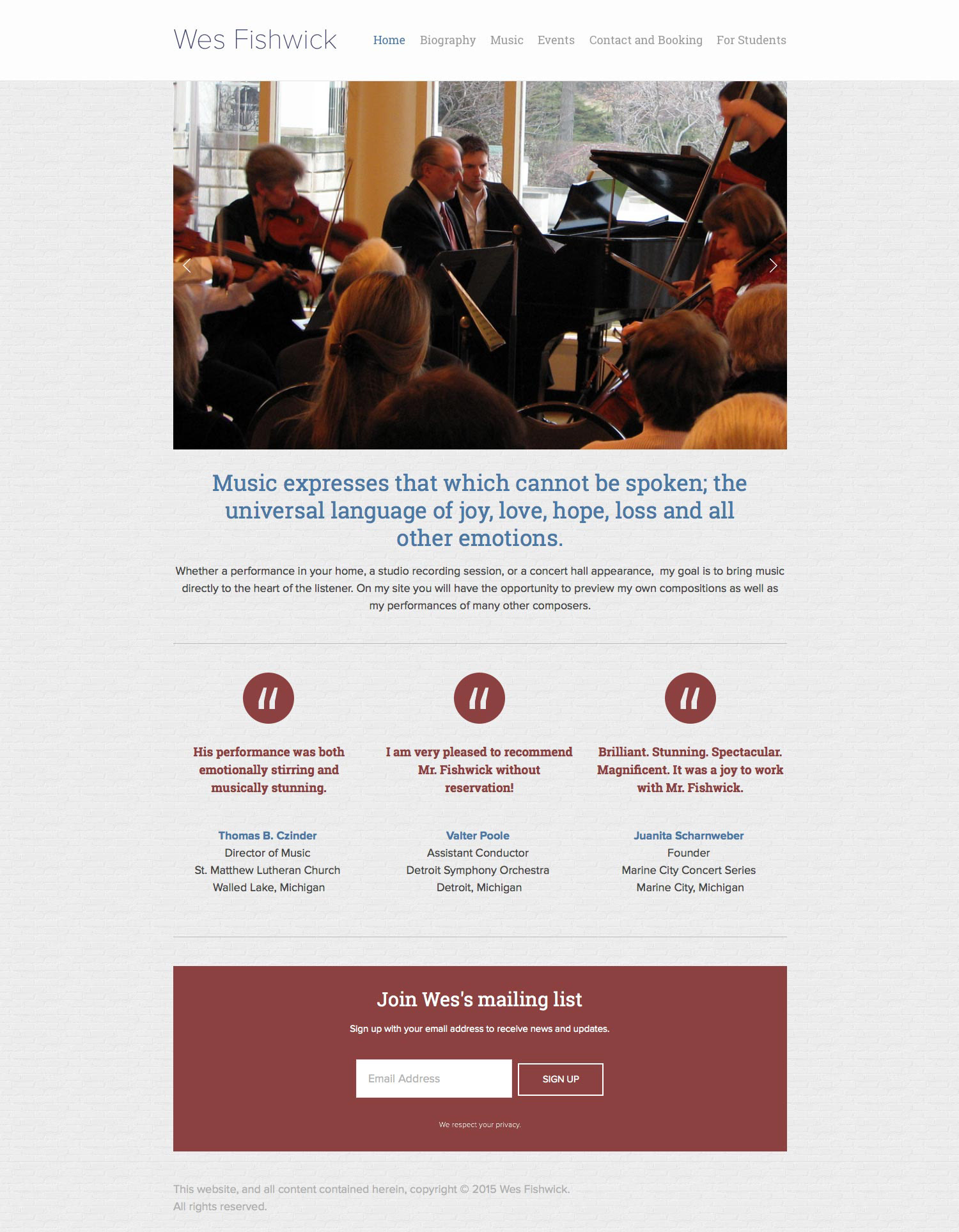 A CMS-based website solution for a concert musician featuring embedded audio tracks and copyright protection.
