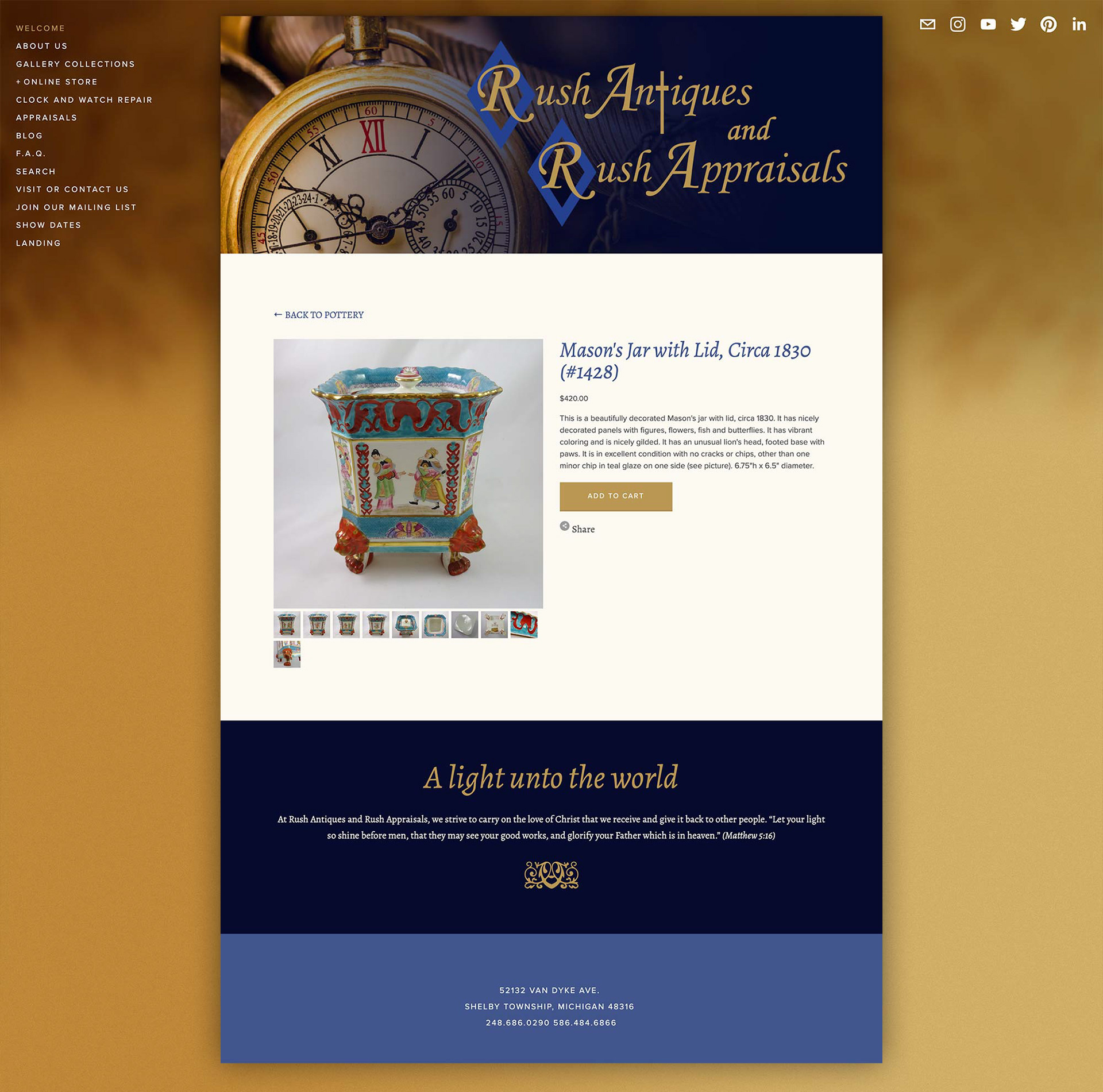 An e-commerce website solution for a charming antique shop, utilizing robust CMS features.
